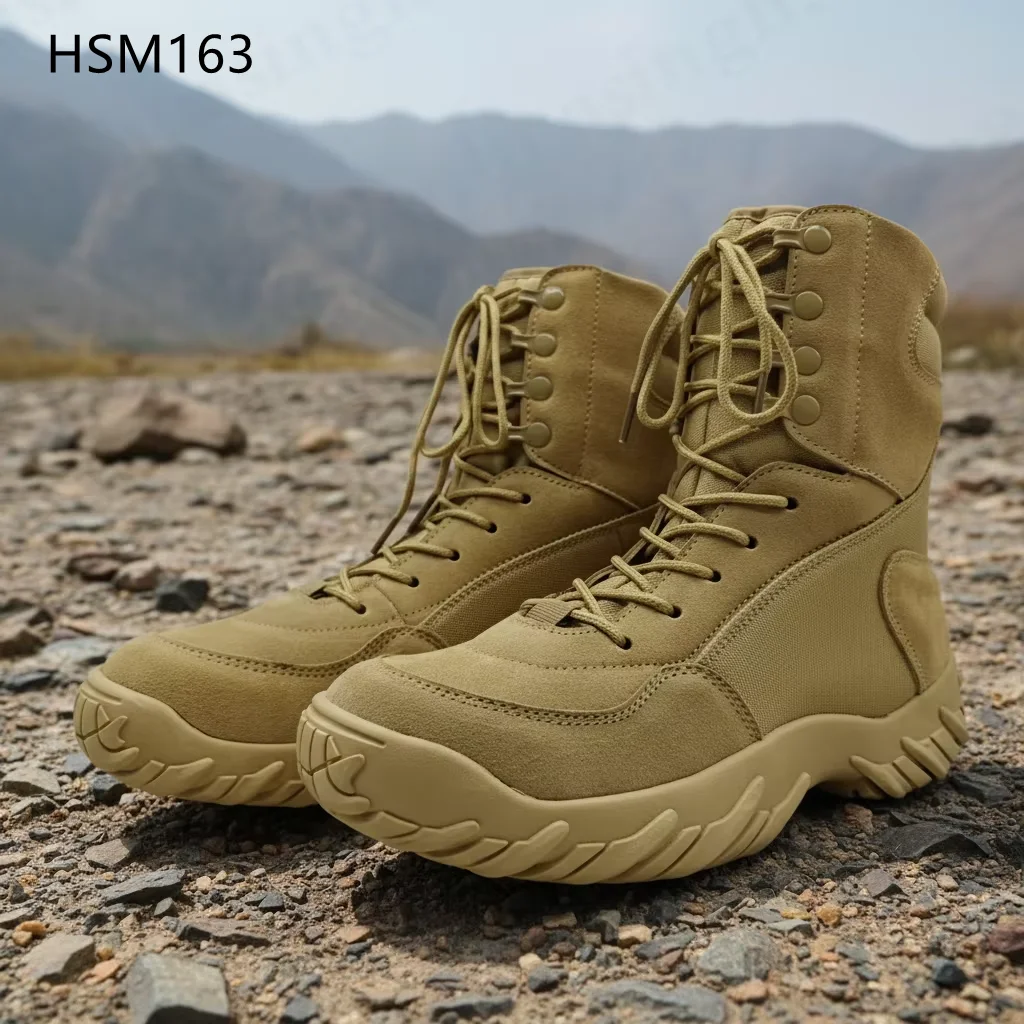 HY,Plateau Hiking Strong Grip Outsole with Stitching Combat Boots Middle East Popular Versatile Black/tan Desert Boots HSM163
