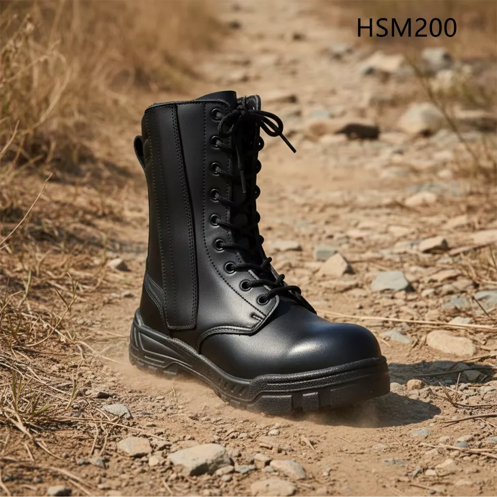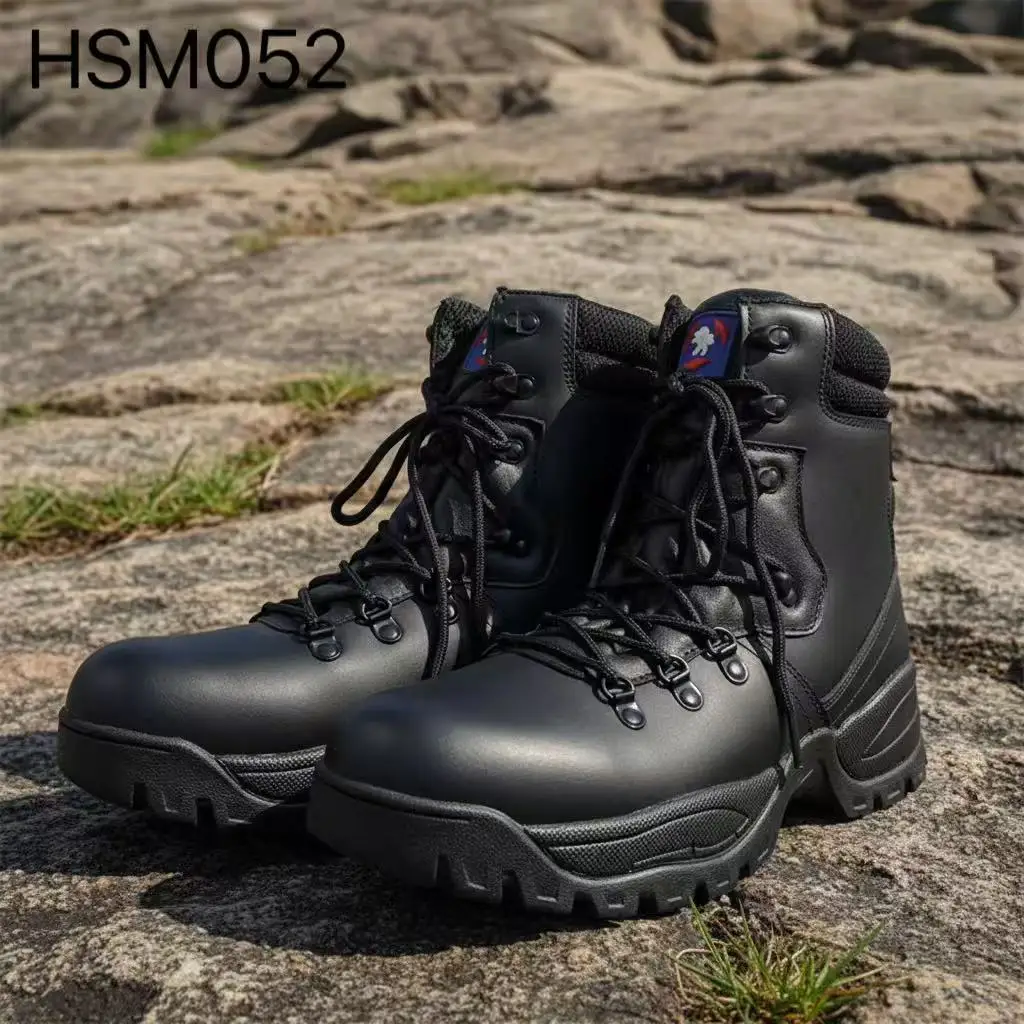 LXG,competitive Sports Competition Full Leather Combat Boots Strong Grip Rubber Sole Off-road Hiking Boots with Pull LoopsHSM002