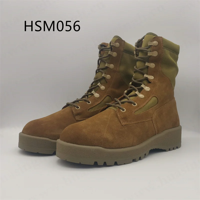 dark Coyote Color Suede Leather Combat Boots with Waterproof Sock Elastic Outsole Belleville Training Tactical Boots HSM056