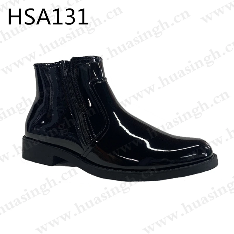 middle-cut Shining Full Grain Leather Mens Dress Shoes Uniform Officer Shoes with Double Side Zipper for Malaysia HSA131