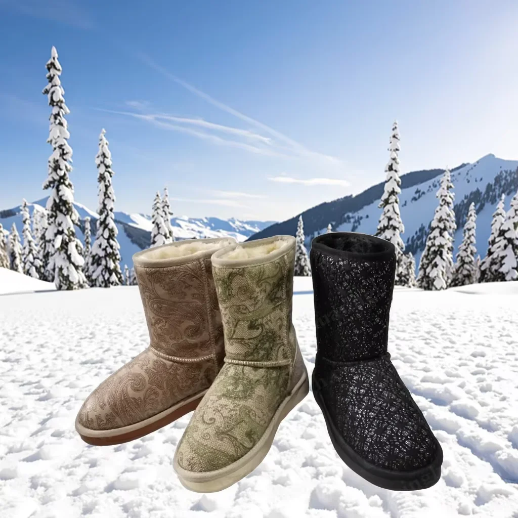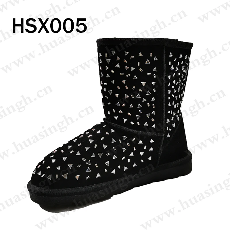 Korea Popular Diamond Ornament Design Lady Snow Boots Winter Trails Mid-Cut Anti-skid TPR Sole Women Winter Boots HSX001