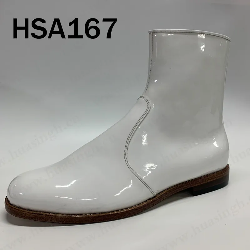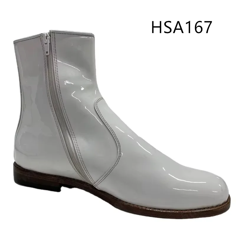 Premium Collection Mid Cut Shining Leather Black/white Combat Boots Business Event Easy Clean Men Marching Boots HSA115